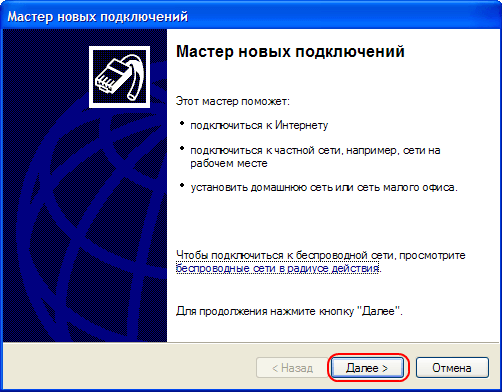 4. Откроется «Мастер новых подключений». Нажимаем «Далее»