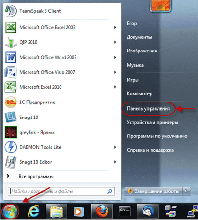 1. Нажмите кнопку «Пуск», и выберите пункт «Панель управления».