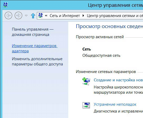2. В левой верхней части этого окна щелкните по ссылке «Изменение параметров адаптера».