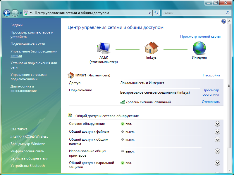 Если в «Панели управления» перейти к классическому виду, то выбирать нужно пункт «Центр управления сетями и общим доступом». Откроется окно следующего вида: