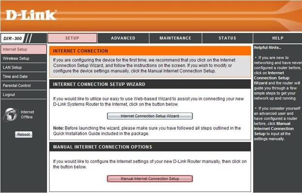 На вкладке Setup, выбираете вкладку Internet Setup.