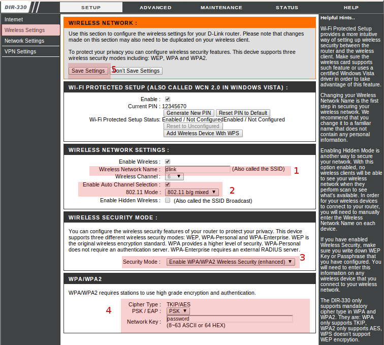 Для этого заходим: Setup → Wireless settings → Manual Wireless connection setup.