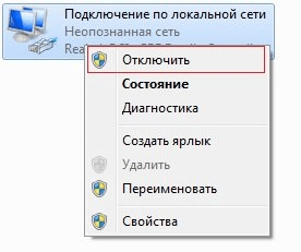 Найдите «Подключение по локальной сети» или «Ethernet» ПКМ, жмите «Отключить», а после ПКМ и «Включить»