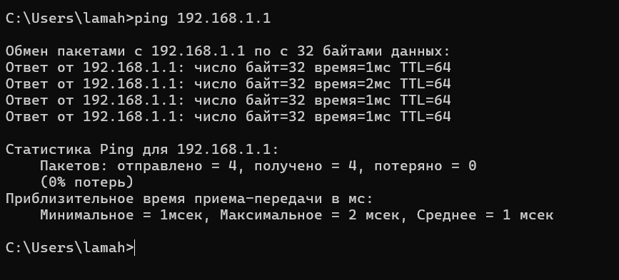 Стоит отметить, что в Windows по умолчанию выполняется отправка только 4 пакетов. Чтобы запустить ping до тех пор, пока пользователь самостоятельно не остановит процесс, необходимо использовать параметр -t.