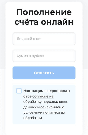 На странице пополнения счёта введите свой лицевой счёт в компании Интерра, который можно узнать на странице личного кабинета. Укажите сумму в рублях. Нажмите галочку о предоставлении персональных данных и нажмите «Оплатить»