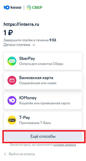 Вас перенаправит на страницу выбора платёжной системы. Оплату можно совершить любой Российской банковской картой (кредитная, дебетовая), с помощью СПБ, SberPay или T-PAY.