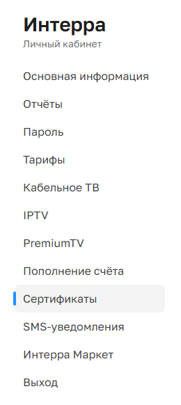 2. В контекстном меню найдите строку «Сертификаты» и нажмите на неё