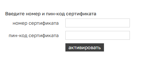 3. На странице «Сертификаты», введите «Номер сертификата» и «Пин-код сертификата»